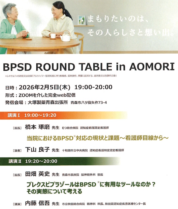 【New】大塚製薬株式会社から「BPSD ROUND TABLE in AOMORI」(青森県看護協会後援)のご案内です